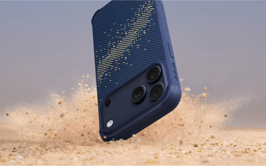 Преміальні матеріали та відчуття Арамідне волокно надає поверхні гладку текстуру та підвищену міцність. Матеріал відрізняється легкістю та стійкістю до зносу, зберігаючи охайний зовнішній вигляд. Чохол приємно відчувається в руці та не ковзає під час використання.