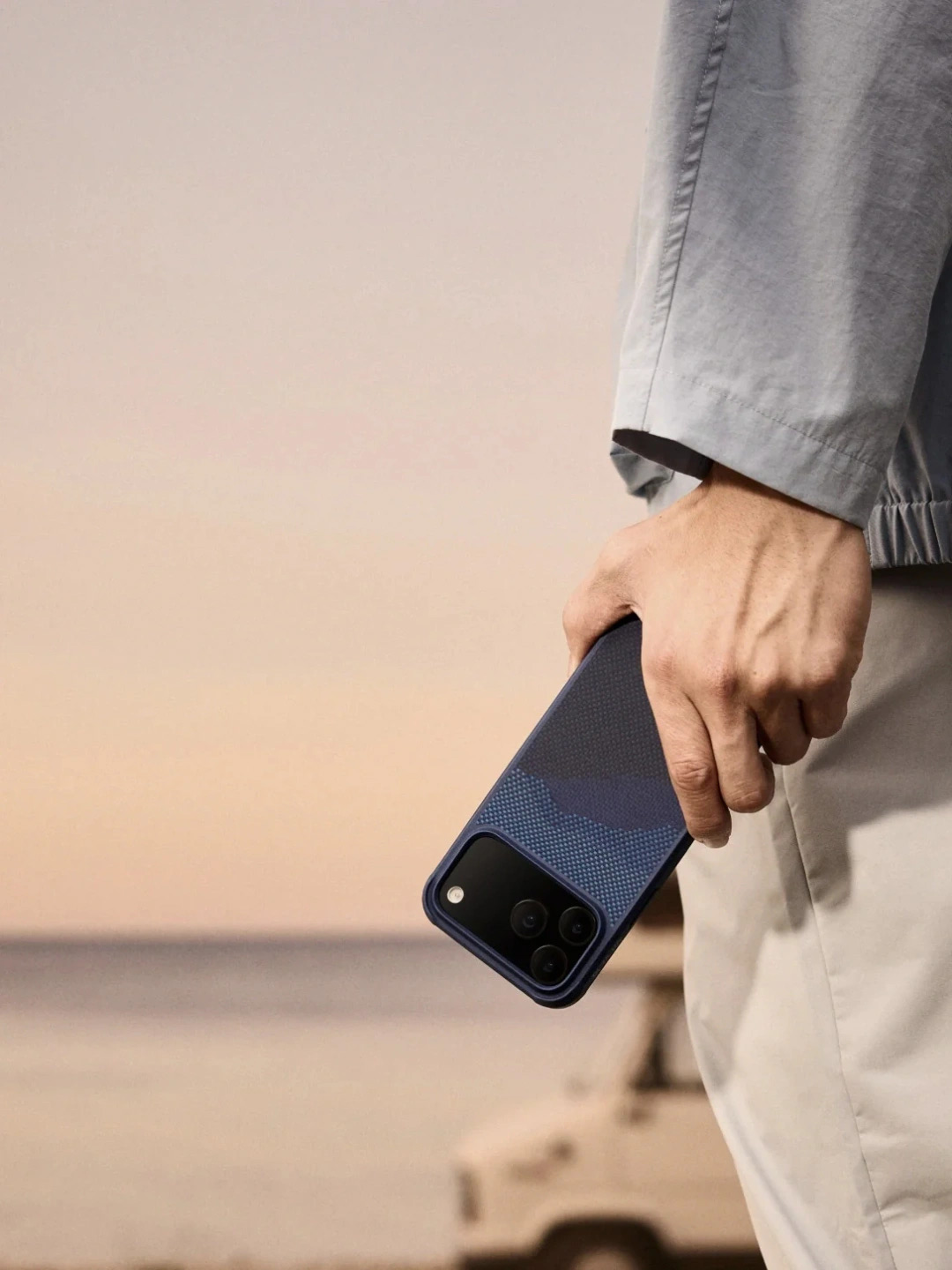 Преміальні матеріали та відчуття Арамідне волокно надає поверхні гладку текстуру та підвищену міцність. Матеріал відрізняється легкістю та стійкістю до зносу, зберігаючи охайний зовнішній вигляд. Чохол приємно відчувається в руці та не ковзає під час використання.