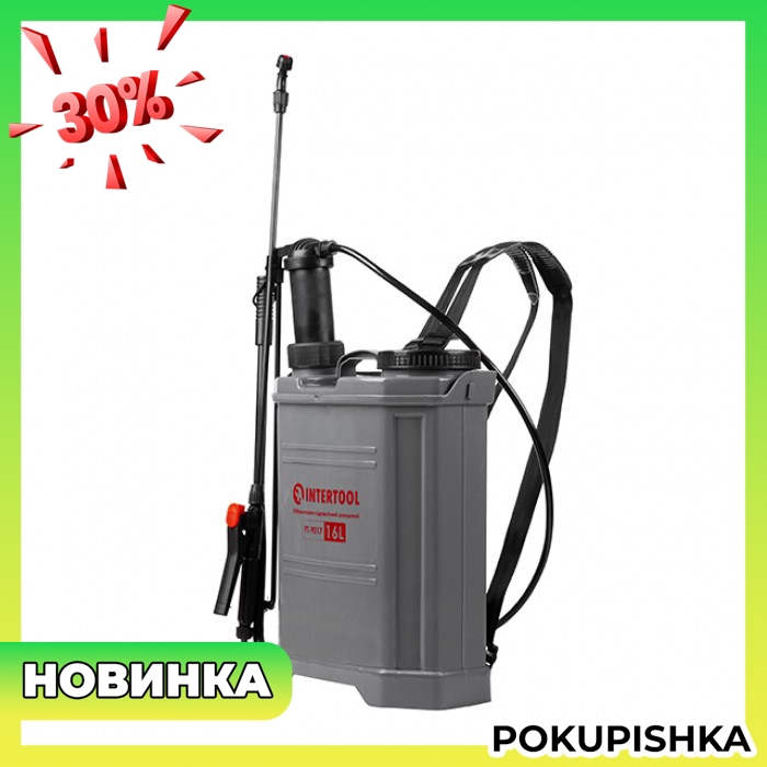 Обприскувач INTERTOOL ранцевий 16 л для саду та городу гідравлічний з регулятором потоку