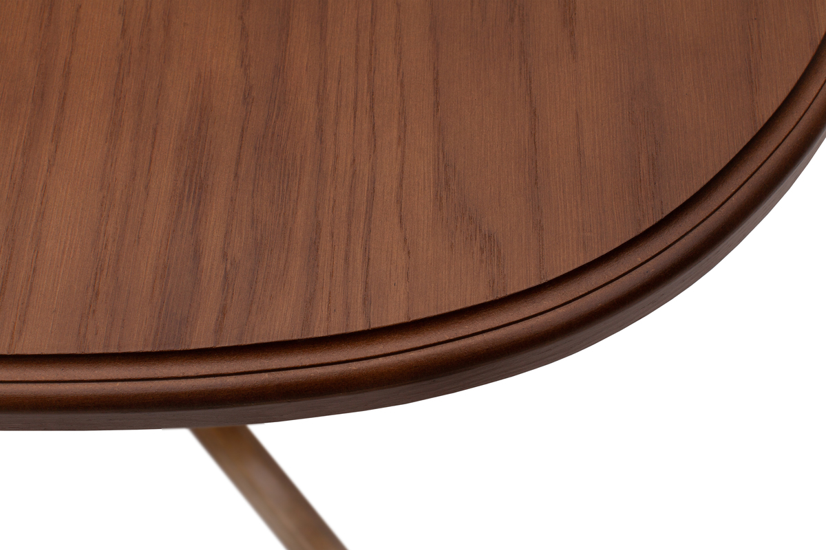 Обідній стіл Тріумф — це не просто меблі, а центральний елемент вашого інтер'єру. Його розсувна овальна форма дозволяє швидко адаптувати простір під будь-які потреби: будь то затишна сімейна вечеря або святковий банкет з друзями. Розмір столу в розкладеному вигляді досягає 145 см, що забезпечує комфортне розміщення до 6 осіб.