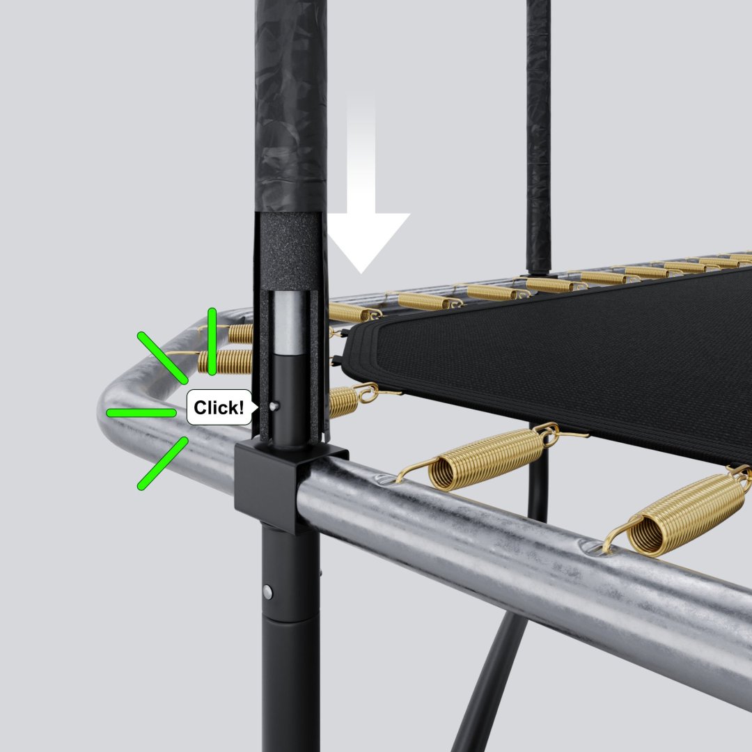 - Система CROSS-SECTION дозволяє швидко зібрати батут без гвинтів та інструментів – ви зможете зібрати його приблизно за 30 хвилин, не докладаючи зусиль та не маючи досвіду.