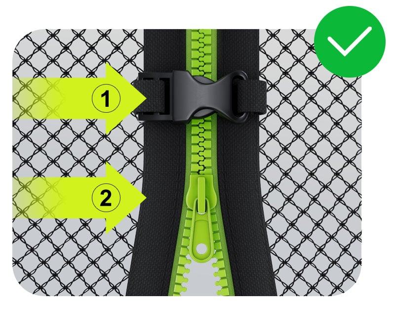 Застібка-блискавка та додаткові застібки підвищують безпеку та запобігають випадковому відкриттю під час гри.