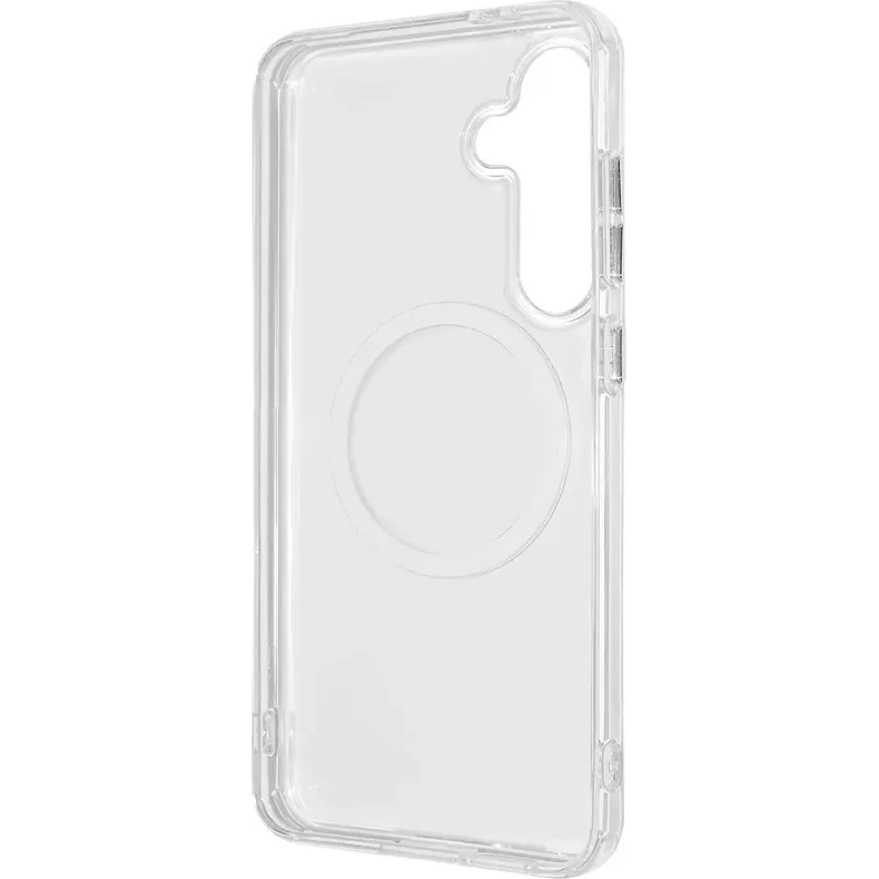 Чохол Wave Clear Case with Magnetic Ring для Samsung Galaxy S24 FE виконаний у мінімалістичному дизайні з прозорою поверхнею, що дозволяє підкреслити оригінальне оформлення смартфона та зберегти видимість логотипу бренду. Глянцеве покриття надає чохлу елегантний зовнішній вигляд, а також робить його приємним на дотик, додаючи додатковий комфорт під час використання пристрою.