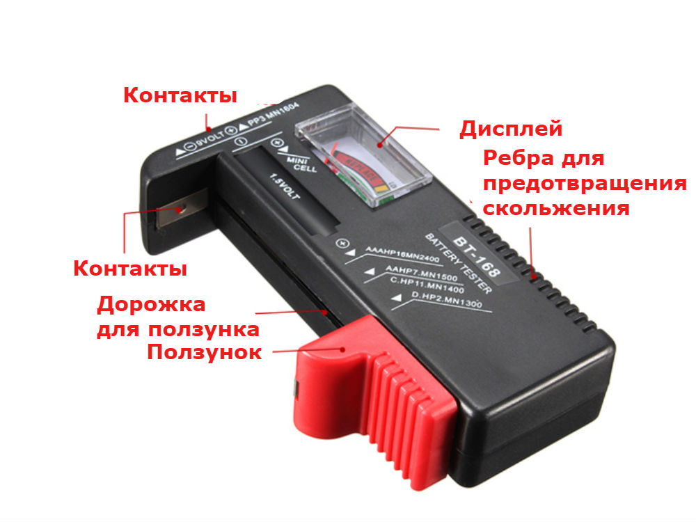 Тестер для батарейок Vktech BT-168 - це прилад, який допоможе Вам визначити час заміни батарейки. Тестер сумісний з батарейками такого типу: AAA, HP16, MN2400, R03, AA, HP7, MN1500, UM3, C, HP11, MN1400, SP11, LR14, UM2, D, HP2, MN1300, SP2, R20, UM1, PP3, MN1604 , 6F22, 066P.