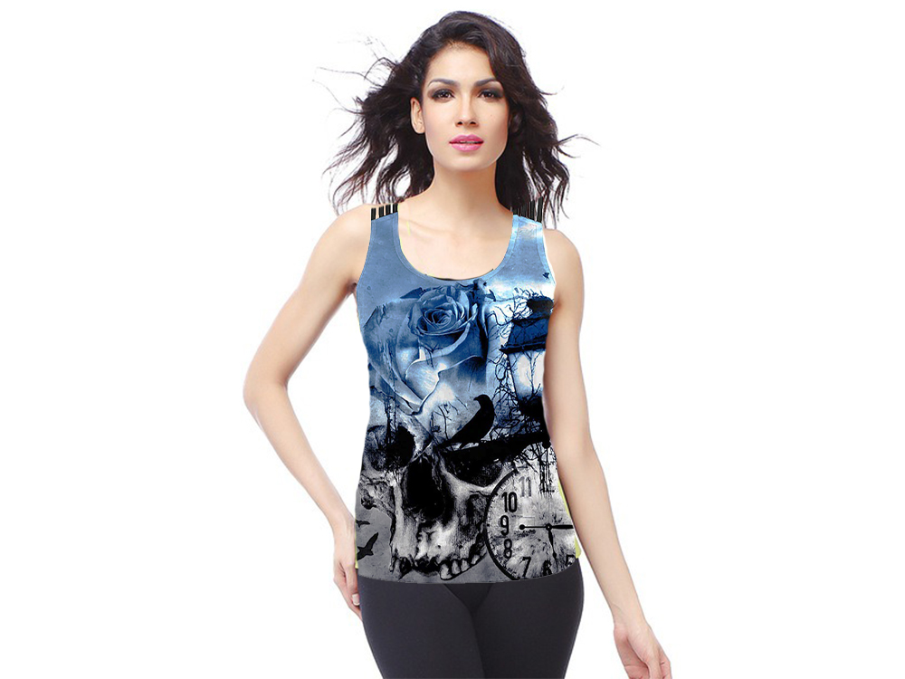 Майка з принтом Череп і Роза 3D - дуже красива майка з яскравим і цікавим принтом у вигляді черепа, троянди і годин.