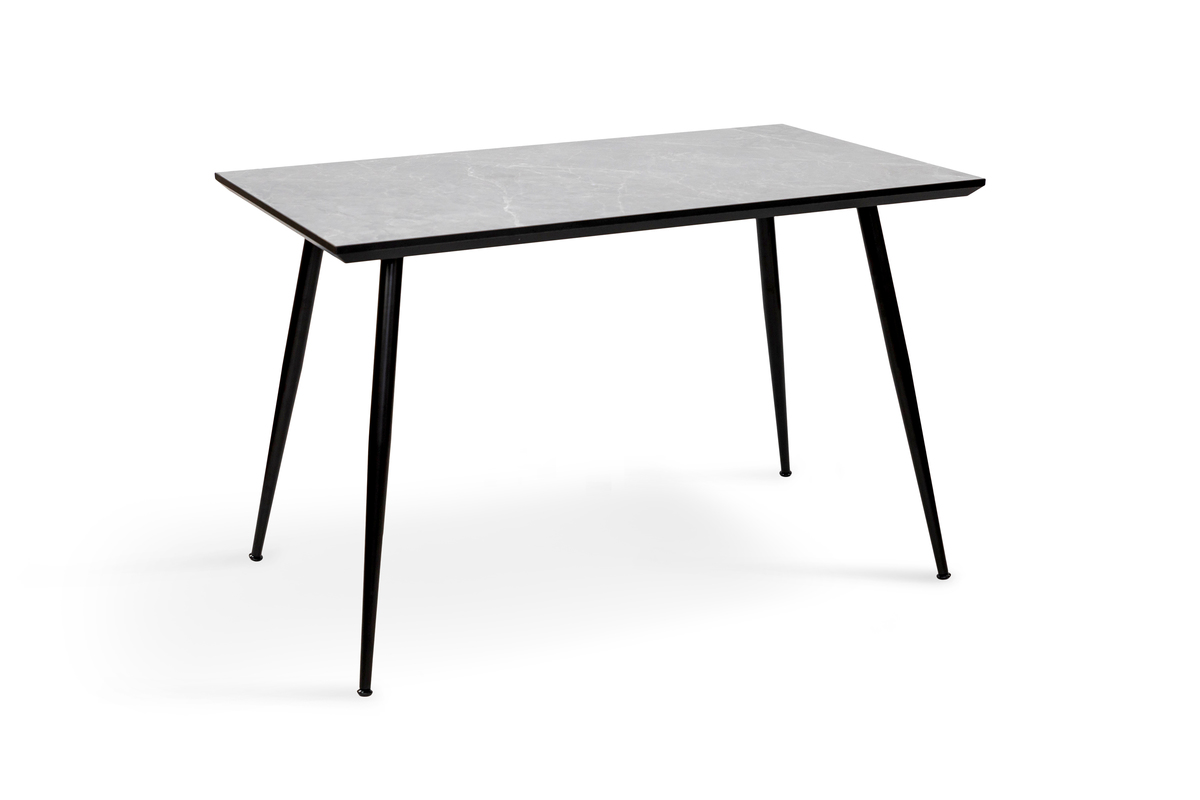 Стіл Торнадо чорний — це не просто меблі, це стильний елемент інтер'єру, який стане центром вашої кухні. Його розміри 120 см в довжину і 70 см в ширину дозволяють зручно розміститися за ним усій родині. Висота 76 см забезпечує комфорт при використанні, а стильний колір «сирій бетон» у поєднанні з чорними металевими ніжками додає сучасності та елегантності.