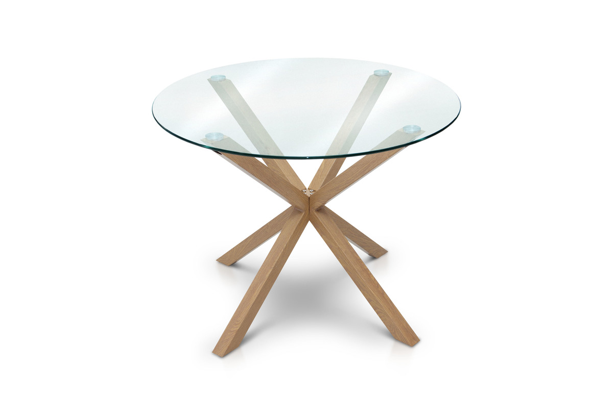 Стіл Джин термодрук D=100 см прозоре загартоване скло для дому та офісу меблі з металевими ніжками