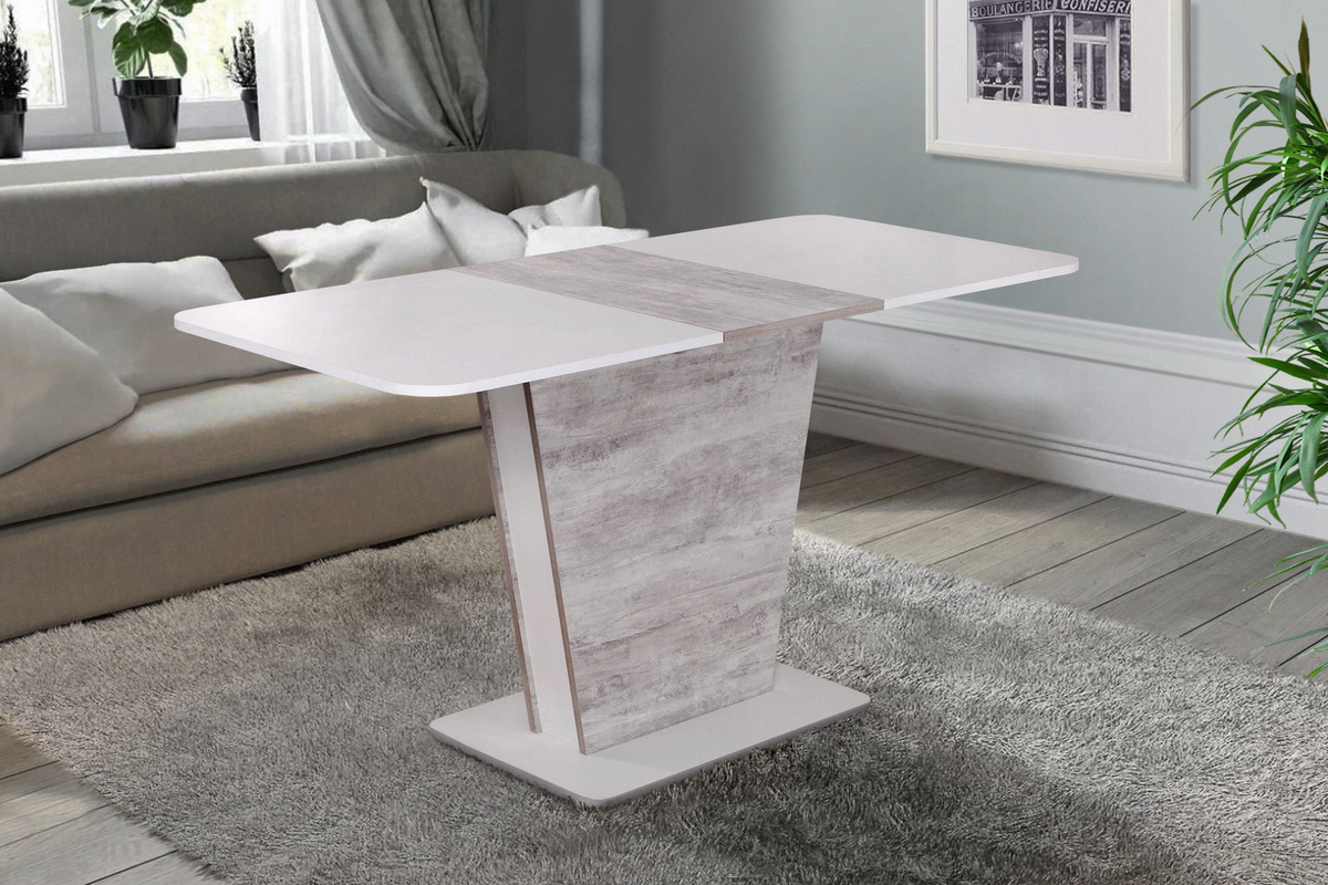 Стіл Спарк білий урбан — це стильний і функціональний обідній стіл, який стане чудовим доповненням як для кухні, так і для офісу. Його розміри (1100(+350)*680, висота: 765) дозволяють зручно розмістити за ним до 6 осіб, що робить його ідеальним для сімейних обідів або ділових зустрічей.