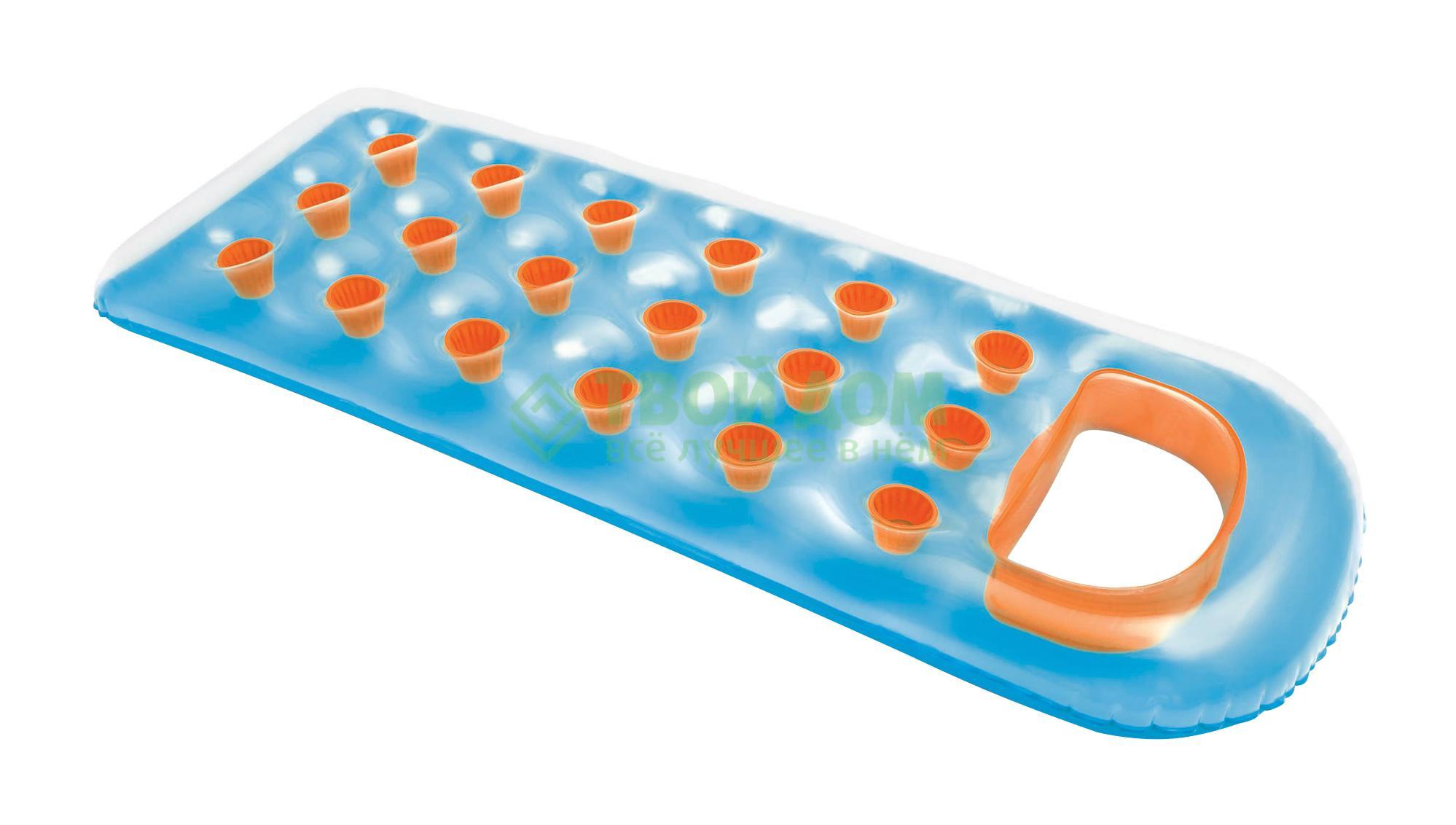 Надувний матрац Intex 59895-blue ідеально підходить для всіх, хто любить проводити час на воді – від дітей до дорослих. Він стане чудовим супутником для пляжного відпочинку, пікніків на воді або просто розслаблюючого відпочинку біля басейну. Це чудовий вибір для сімейних виїздів, романтичних зустрічей або дружніх посиденьок на воді.