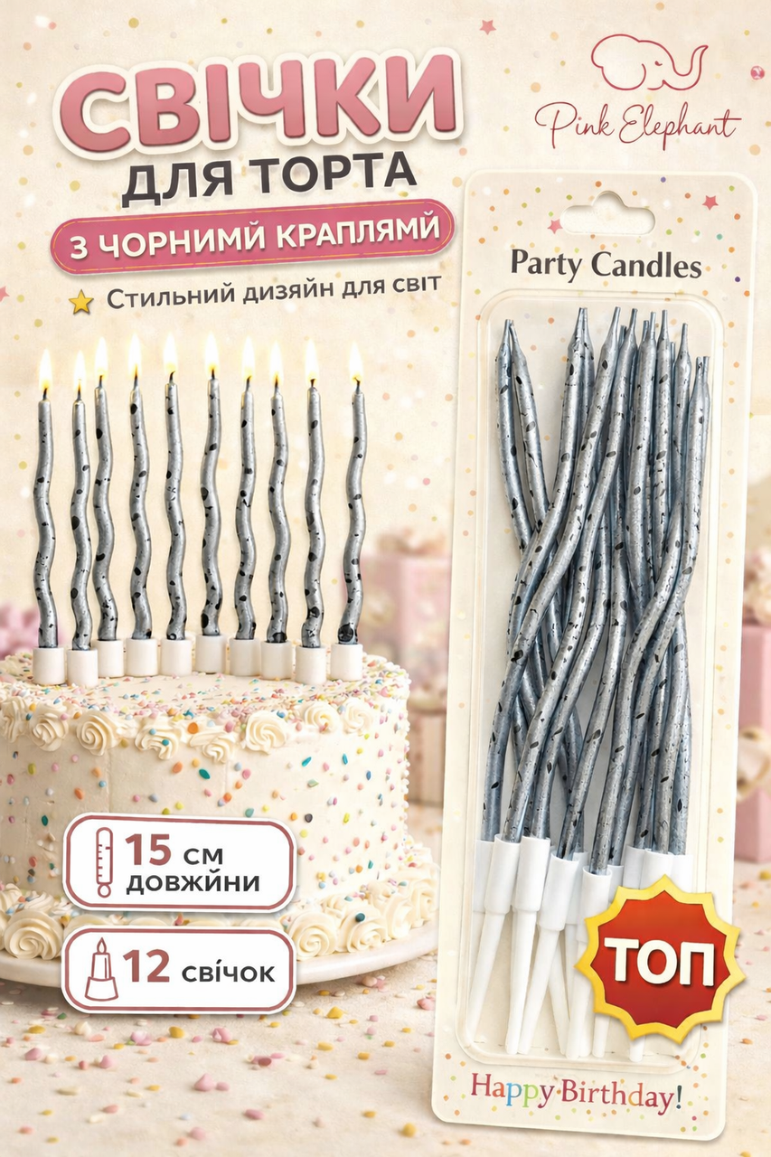 Свічки мають сучасний дизайн, добре тримають форму та гарно виглядають на фото — чудово підходять для днів народження, весіль, дитячих свят та тематичних вечірок.