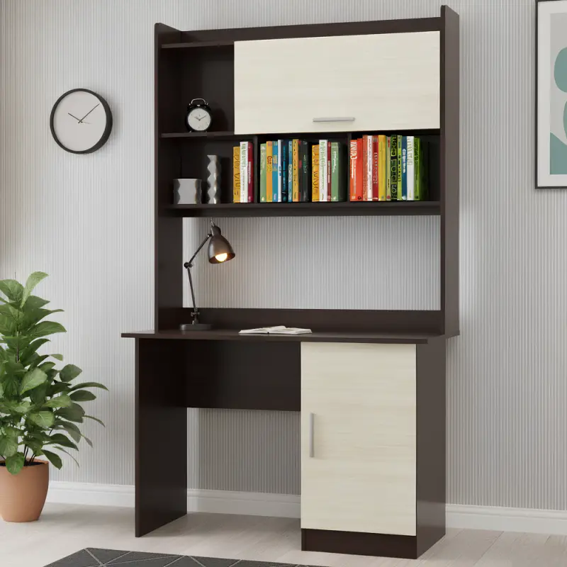 Надбудова міцно кріпиться до столу та має декілька секцій для розміщення книг, зошитів, канцелярії та інших речей. Це дозволяє максимально ефективно організувати робочий простір.