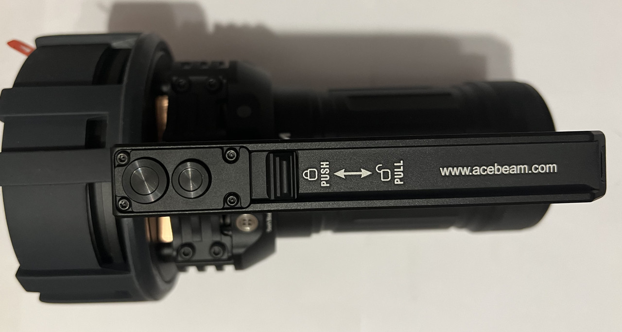 Найпотужніший пошуковий ліхтар флагман Acebeam X75 від компанії Acebeam працює на 12 світлодіодів Cree XH-P 70.2 сумарно видає 80 000 люменів і дальність світлового потоку до 1150 метрів. акумуляторний блок Li-ion, що йде в комплекті, Li-ion, що складається з 4 акумуляторів 21700 3.6 В. ємністю кожен 4250 mAh, який повністю заряджаються за 1 годину через високошвидкісний порт заряджання Type-C протокол заряду Power Delivery максимальною потужністю до 100W роблять цей ліхтар готовим для використання відразу з коробки. Запатентоване механічне блокування від випадкового увімкнення й керування однією рукою дає змогу зі зручністю та легкістю використовувати ліхтар у будь-якій ситуації. Так само в моделі Acebeam X75 застосували активне охолодження за допомогою спеціальної ручки, у якій встановлений малошумний водонепроникний кулер вентилятор IP68, який забезпечує ефективне охолодження в режимах "Power Mode" через спеціальні вентиляційні канали в голові ліхтаря, які містять радіатори з чистої міді. Ручка виготовлена з авіаційного алюмінію, встановлюється в спеціальні пази за допомогою шестигранників.